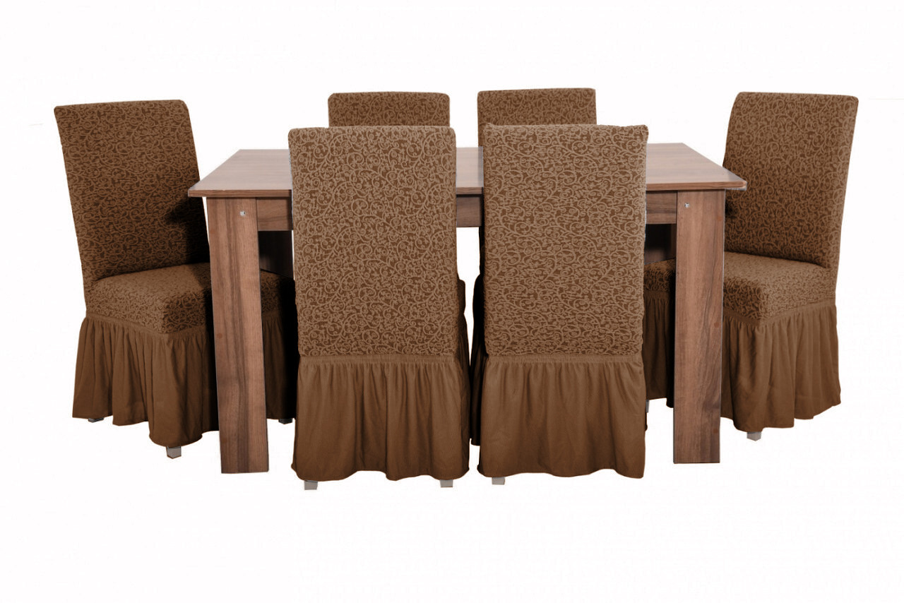 Чохли для меблів Milano стільці буклированный жаккард з оборкою 6 шт. Гарячий шоколад