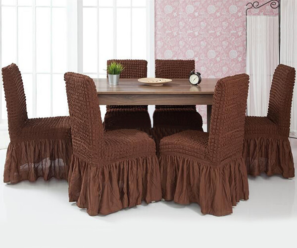 Чохли для меблів Milano стільці жатка з оборкою 6 шт. Коричневий