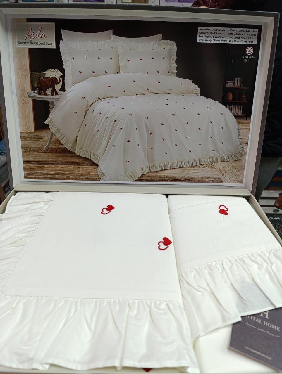 Запакована постільна білизна в красиву подарункову коробку і буде чудовим подарунком на будь-яку урочистість.