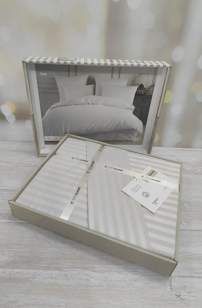 Постільна білизна сатин страйп євро розмір The Quaris світло сіра