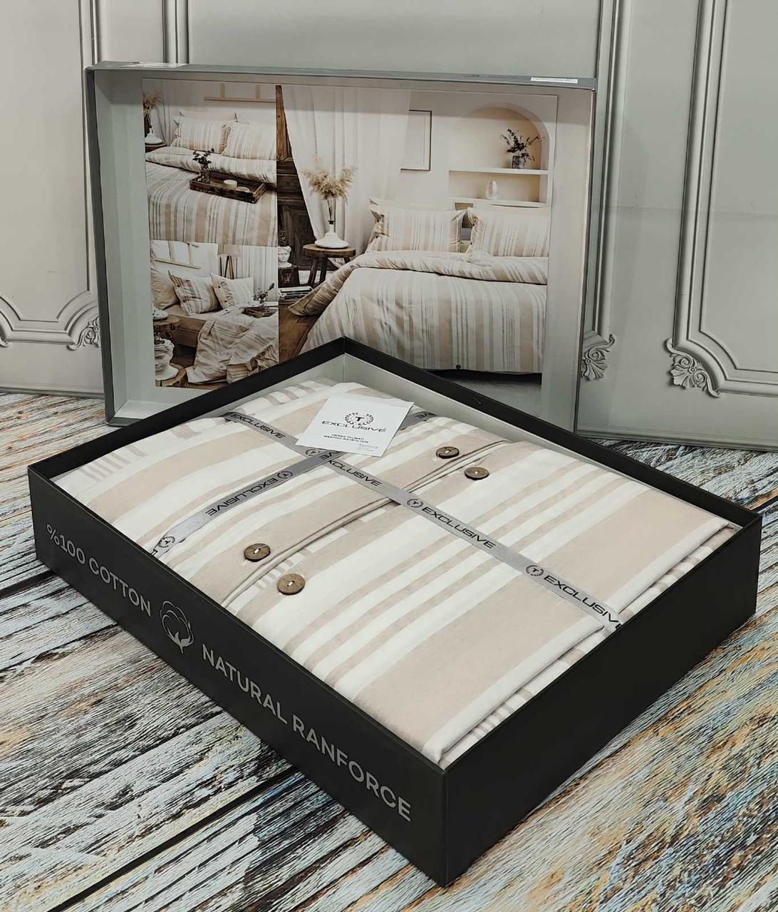 Постільна білизна ранфорс з простирадлом на гумці євро розмір Exclusive бежева